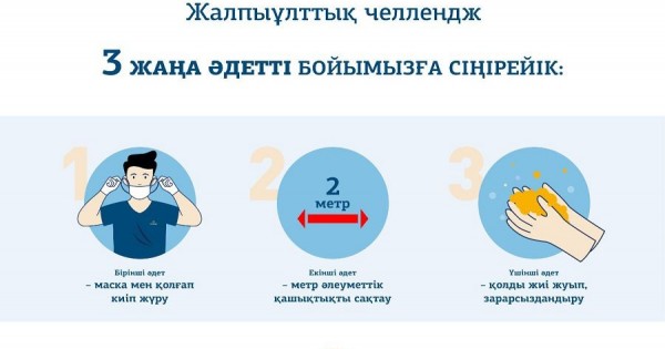 #3zhańaádet جالپىۇلتتىق چەل­لەندجى حالىق جانە بيزنەس اراسىندا سانيتارلىق نور­­ما­لاردى ناسيحاتتاۋعا با­عىت­­تال­­عان. قازىرگى تاڭدا پان­دە­ميا جاع­دايىندا ءۇش قارا­پا­­يىم ادەت­تى ساقتاۋ اسا ما­ڭىز­دى. ءبى­­­رىن­شى – الەۋمەتتىك قا­شىق­تىق­تى ساق­تاۋ. ەكىنشى – ماس­كا جانە قول­عاپ كيۋ. ءۇشىنشى – قول­دى ءجيى جۋىپ, انتيسەپتيكپەن زارار­سىزداندىرۋ.
