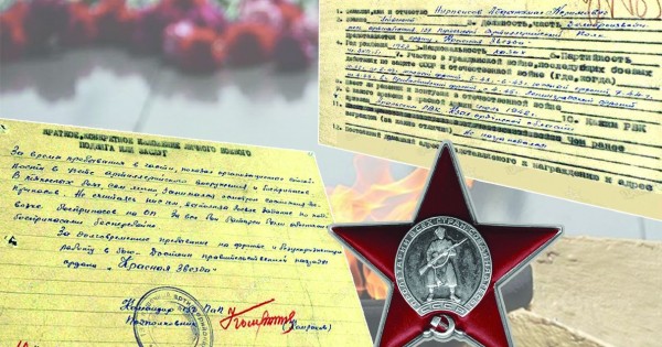 «قىزىل جۇلدىز» وردەنى بەرىلەردە ۇسىنىلعان ماراپات قاعازىندا: «بولىمدە ارتيللەريالىق قارۋ-جاراقتىڭ ەسەبىن جۇرگىزگەندە ۇيىمداستىرۋشىلىق قابىلەتىن كورسەتتى, قۇرالداردىڭ جارامدىلىعىن تىكەلەي ءوزى قاداعالادى, ءتىپتى اۋىر ۇرىس كەزىندە اتۋ بەكەتىنە ۇزدىكسىز وق-ءدارى جەتكىزىپ, باتارەيالار ءاردايىم قامتاماسىز ەتىلىپ وتىردى» دەپ جازىلعان ەكەن.
