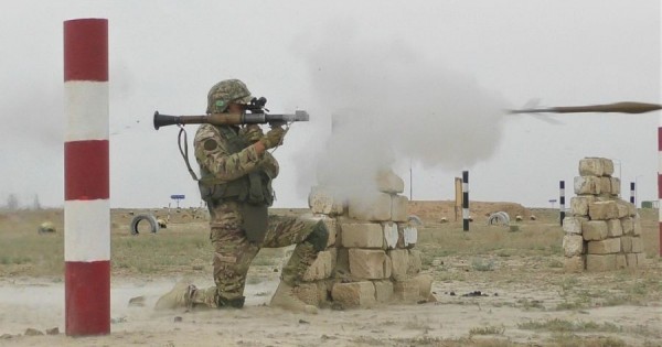 وفيتسەرلەر مەن كەلىسىمشارت بويىنشا اسكەري قىزمەتشىلەر كالاشنيكوۆ اۆتوماتىنان باقىلاۋ اتىس جاتتىعۋلارىن ورىندادى.