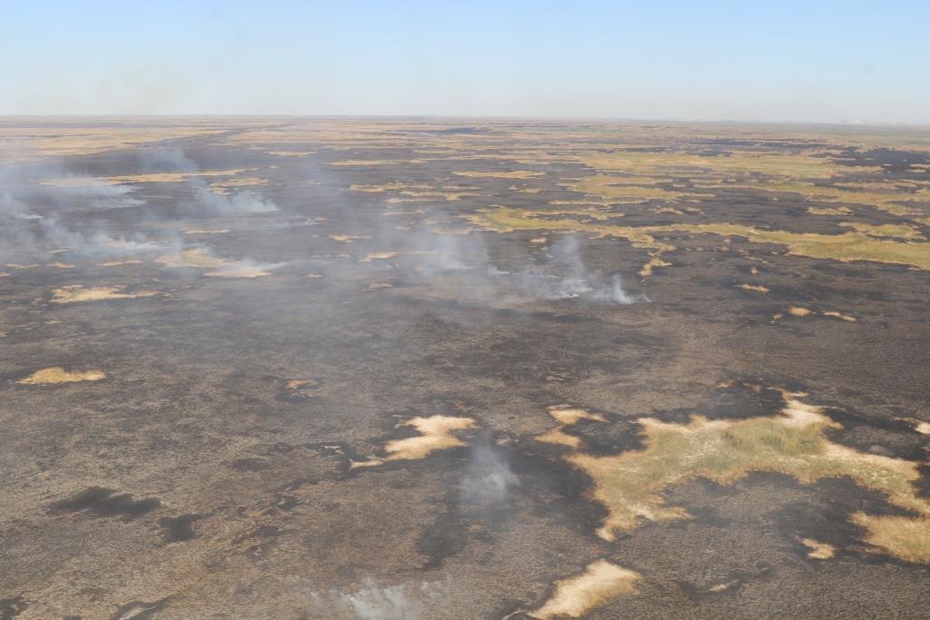 "توتەنشە جاعدايلار دەپارتامەنتىنىڭ 3 قىزمەتكەرى وقيعا ورنىنا بارىپ, ءورتتىڭ اتىراۋ قالاسىنان شامامەن 35 كم قاشىقتا, كاسپي تەڭىزىنىڭ باتپاقتى جاعالاۋىندا ورىن العانىن انىقتادى. 2 قىركۇيەكتە دەپارتامەنت باستىعىنىڭ ورىنباسارى, ازاماتتىق قورعاۋ پولوكۆنيگى ر. بليالوۆتىڭ باسشىلىعىمەن "Eurocopter" 145 UP-ەس033" تىكۇشاعىمەن كاسپي تەڭىزىنىڭ جاعالاۋى مەن "اق جايىق" مەملەكەتتىك تابيعي رەزەرۆاتى اۋماعىنىڭ شەكاراسىنداعى قامىس ورتىنە اۋەدەن بارلاۋ جاسالدى. بارلاۋ كەزىندە "ۆەستا" اۋدانىندا شامامەن 500-800 شارشى مەتر بولاتىن ءۇش وشاق انىقتالدى. بۇرىن ورتەنگەن قامىستىڭ ورنى تۇتىندەپ جاتىر. ورتەنگەن اۋماقتىڭ جالپى اۋدانى 2 گەكتاردى قۇرايدى", دەپ حابارلادى دەپارتامەنتتىڭ ءباسپاسوز قىزمەتى.