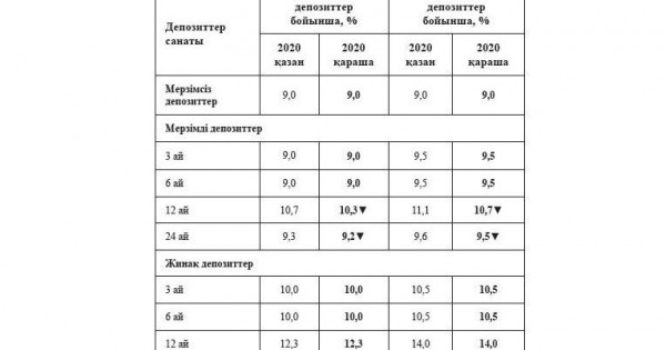 بۇل رەتتە پايىزدىق مارجانىڭ كارانتيندىك شارالاردىڭ اسەرىنەن ورىن العان ەكونوميكالىق قۇلدىراۋدىڭ سەبەبىنەن ىقتيمالدى تومەندەگەنىن ەسكەرەر بولساق, 24 ايعا ارنالعان جيناق دەپوزيتتەر بويىنشا نارىقتىق مولشەرلەمەلەردىڭ 0,3 پايىزدىق تارماققا تومەندەۋى بانكتەردىڭ قور جيناۋدا ساقتانۋ ساياساتىنا كوشكەنىن بىلدىرەدى.