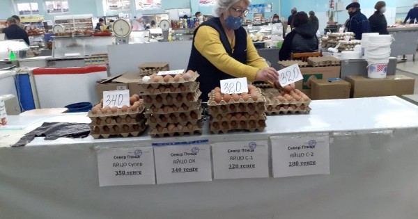 قىركۇيەك ايىندا ساۋدا ورتالىقتارىندا «جاس قانات» فابريكاسىنان شىعاتىن 1-ساناتتاعى 10 تال جۇمىرتقا 286 تەڭگە تۇرسا, قازىرگى باعاسى 363 تەڭگەگە جەتكەن. قالانىڭ ورتالىق ساۋدا بازارىنداعى ساتۋشىلار دا جۇمىرتقانىڭ ىرىكتەلگەن, جوعارى سۇرىپتى تۇرلەرى سوڭعى اپتا ىشىندە بىرنەشە رەت قۇبىلىپ, 20-25 تەڭگەگە قىمباتتاعانىن ايتادى.