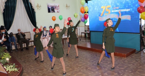 "جاسمين" بي توبىنىڭ ونەرپازدارى اسكەردەگى كۇندەردى ەسكە تۇسىرەتىن "كوك ورامال" بيءىنورىندادى. ۇلكەن ەكراننان جەڭىستىڭ 75 جىلدىق مەرەيتويىنا ارنالعان قۇتتىقتاۋلار ايتىلىپ, سوعىس جىلدارىن ەسكە سالاتىن بەينەروليكتەر كورسەتىلدى.