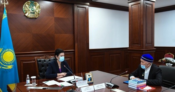كەزدەسۋ بارىسىندا وبلىس اكىمى ونەر يەسىنە "قۇرمەت" گراموتاسىن تابىستاپ, يىعىنا شاپان جاپتى.