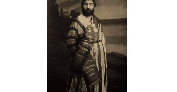 ء ۇشىنشىسى, ساقالىن جىبەرىپ, ۇستىنە الا شاپان كيىپ تۇسكەن فوتوسى.