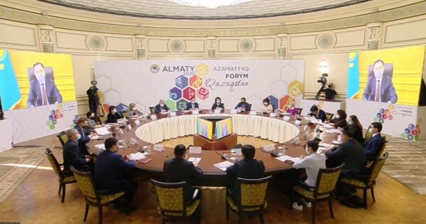 الماتى "ازاماتتىق قوعامدى دامىتۋ: جاڭا سىن-قاتەرلەر جانە قوعام مەن مەملەكەت يگىلىگى ءۇشىن مىندەتتەر" اتتى الماتى قالاسىنىڭ ءحىى ازاماتتىق فورۋمىنىڭ جۇمىسىنا ازاماتتىق قوعام وكىلدەرى قاتىسۋدا.