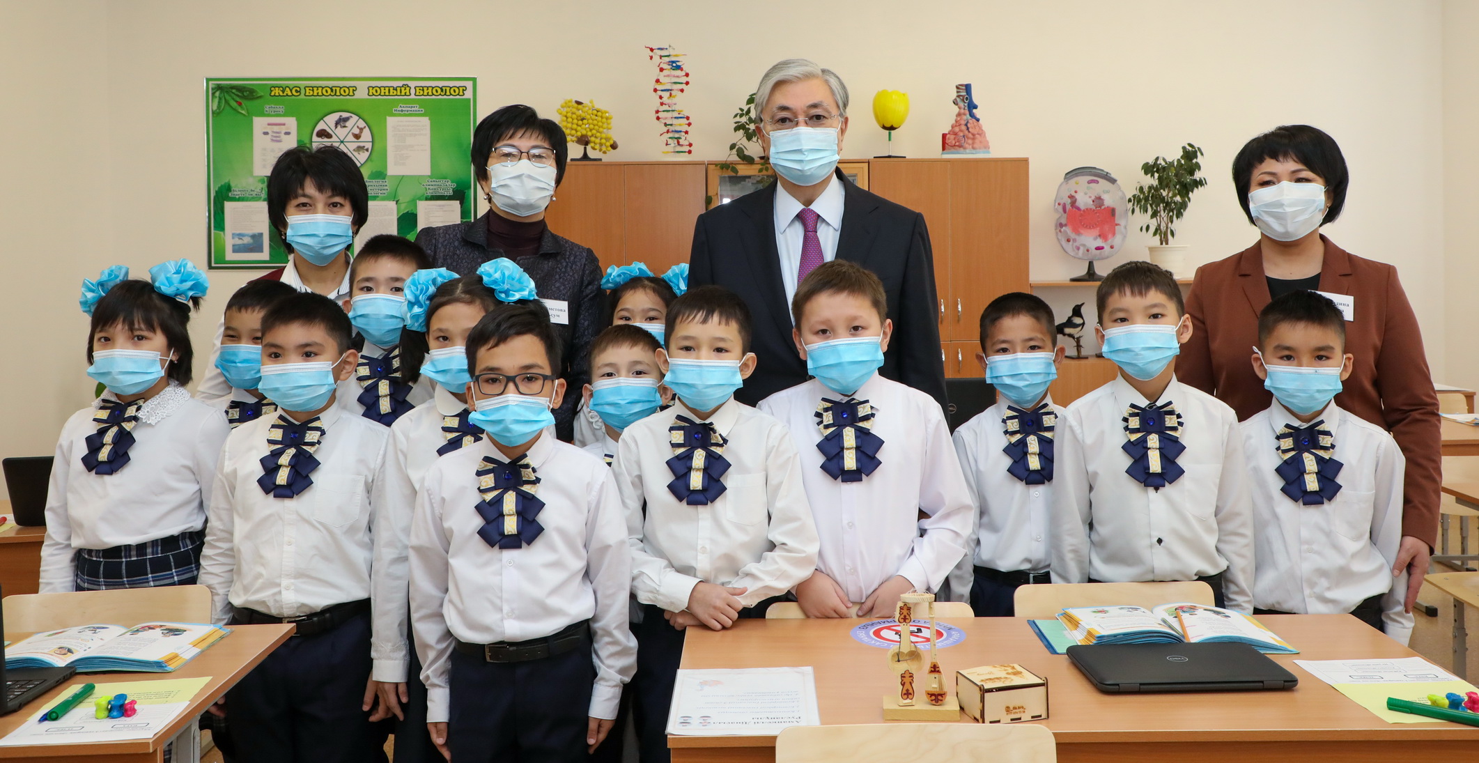 پرەزيدەنت وبلىستا پاندەميا كەزىندەگى وقۋ ۇدەرىسىنىڭ قالاي ۇيىمداستىرىلىپ جاتقانىن سۇرادى. قازىرگى تاڭدا وڭىردەگى  504 مەكتەپتە 204 مىڭ شاكىرت, سونىڭ ىشىندە, ءبىرىنشى سىنىپتىڭ 22 مىڭ وقۋشىسى ءبىلىم الىپ جاتقاندىعى حابارلاندى. سونداي-اق, وڭىردەگى وقۋشى سانى 300-دەن اسپايتىن 279 مەكتەپ شتاتتىق رەجىمدە جۇمىس ىستەيدى. مۇنداي ءبىلىم مەكەمەلەرىندە 29 مىڭعا جۋىق وقۋشى وقىپ ءجۇر. باستاۋىش جانە بەسىنشى سىنىپ وقۋشىلارى ءۇشىن 6166 كەزەكشى سىنىپتار ۇيىمداستىرىلعان. بۇل سىنىپتاردا 77 مىڭنان استام بالا وقىپ جاتىر. ايتا كەتەتىن ءبىر جايت, ءبىلىم بەرۋ مەكەمەلەرىنىڭ بارىندە  سانيتارلىق رەجىم بارىنشا كۇشەيتىلگەن.