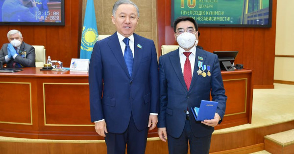 مەملەكەتتىك جانە قوعامدىق قىزمەتى ءۇشىن, ەلىمىزدىڭ الەۋمەتتىك-ەكونوميكالىق جانە مادەني دامۋىنا, حالىقتار اراسىنداعى ىنتىماقتاستىق پەن دوستىقتى نىعايتۋعا قوسقان ەلەۋلى ۇلەسى ءۇشىن ءىىى دارەجەلى «بارىس» وردەنى ءماجىلىس دەپۋتاتى ومارحان وكسىكباەۆقا بەرىلسە, «پاراسات» وردەنى جەكسەنباي دۇيسەباەۆقا جانە دانيا ەسپاەۆاعا تابىس ەتىلدى. «قۇرمەت» وردەنىنە جامبىل احمەتبەكوۆ يە بولدى. ال «ەرەن ەڭبەگى ءۇشىن» مەملەكەتتىك مەدالى اپپارات قىزمەتكەرلەرى ناريمان العوجينگە, بوتاگوز بوتاباەۆاعا جانە كلارا ماۋتەنباەۆاعا بەرىلدى.