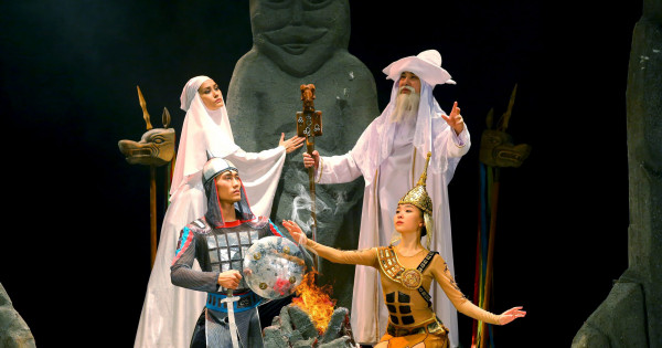 بي تىلىندە سويلەگەن تۇڭعىش تاريحي سپەكتاكلدىڭ قويۋشى حورەوگرافتارى – ەركەبۇلان اعىمباەۆ, قاديشا اعىمباەۆا جانە مەيرامگۇل ايتماعامبەتوۆا.