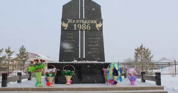 ءۇشارال قالاسىنىڭ ورتالىعىنا ورناتىلعان ەسكەركىشتىڭ اۆتورى بەلگىلى سۋرەتشى ەرمۇحان ءجۇنىسحان. ستەللانىڭ قۇرلىسىنا قاجەتتى شىعىندا اۋدان ازاماتتارى دەمەۋشىلك جاساپ, كوتەرىپ العان ەكەن. مارمارمەن قاپتالعان ەسكەرتكىشتە «جەلتوقسان. 1986» اتتى كورنەكى جازۋ مەن بەيىتشىلىك بەلگىسىندەيتس بولعان كوگەرشىندەر بەينەلەنىپ, «جەلتوقسان جەلى» ءانىنىڭ ءماتىنى دە قاشالعان.