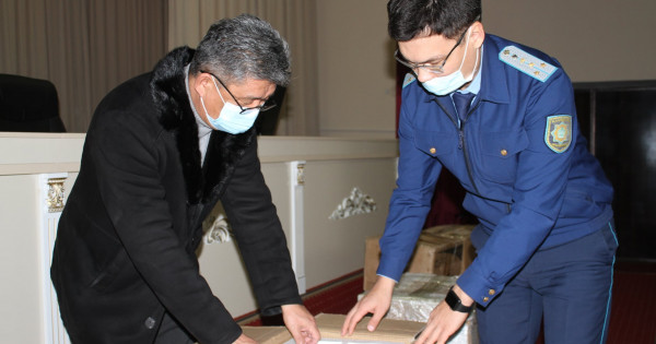 كۇنى كەشە ماقتاارال اۋدانىنىڭ اكىمى باقىت اسانوۆ پەن اۋداننىڭ پروكۋرورى جۇماعالي بوتابەكوۆ كونترابانداشىلاردان تاركىلەنگەن جاساندى تىنىس الۋ اپپاراتتارىن "مىرزاكەنت" جانە "اتاكەنت" اۋداندىق اۋرۋحانالارىنىڭ باسشىلىعىنا تابىس ەتتى.