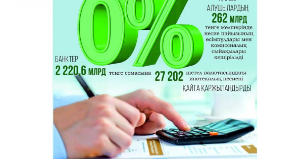 2020 جىلدىڭ 1 جەلتوقسانىنداعى جاعداي بويىنشا 1 731 قارىز الۋشى قوسىمشا كومەك سۇراپ بانكتەرگە جۇگىندى, ونىڭ ىشىندە 1 177 قارىز الۋشىعا 9,8 ملرد تەڭگە كولەمىندە كومەك كورسەتىلدى, 270 ءوتىنىش قاراستىرىلۋدا, 344 ازاماتقا نەسيە شارتتارىن ورىنداماۋىنا بايلانىستى كومەك كورسەتىلگەن جوق.