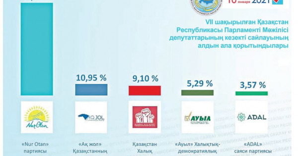 الدىن الا قورىتىندىنى ورتالىق سايلاۋ كوميسسياسىنىڭ حاتشىسى ءسابيلا مۇستافينا حابارلادى. «اۋىل» حالىقتىق-دەموكراتيالىق پاتريوتتىق پارتياسى 5,29, Nur Otan پارتياسى 71,09, ADAL ساياسي پارتياسى 3,57, قازاقستاننىڭ «اق جول» دەموكراتيالىق پارتياسى 10,95 جانە «قازاقستاننىڭ حالىق پارتياسى» 9,10 پايىز داۋىس جينادى.