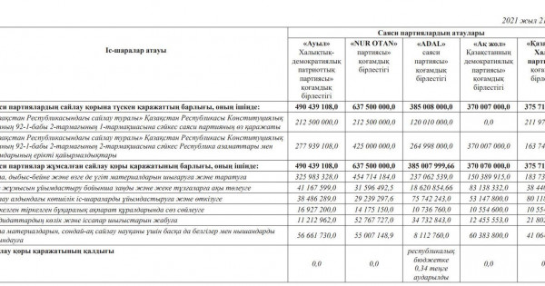 «قازاقستان رەسپۋبليكاسىنداعى سايلاۋ تۋرالى» قازاقستان رەسپۋبليكاسى كونستيتۋتسيالىق زاڭىنىڭ 34-بابى 4-تارماعىنا سايكەس ساياسي پارتيالاردىڭ ماجىلىسكە سايلاۋدىڭ قورىتىندىلارى انىقتالعاننان كەيىن سايلاۋ قورى قاراجاتىن پايدالانعانى تۋرالى ەسەبى