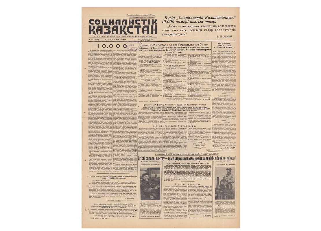 ءبىز بۇگىن وزدەرىڭىزگە وسىدان تۋرا 56 جىل بۇرىنعى 10 مىڭىنشى ءنومىر تۋرالى ايتا وتىرىپ, گازەتتىڭ قوعامداعى باستى قوزعاۋشى كۇش ەكەنىن تاعى ءبىر مارتە تارقاتقىمىز كەلەدى.