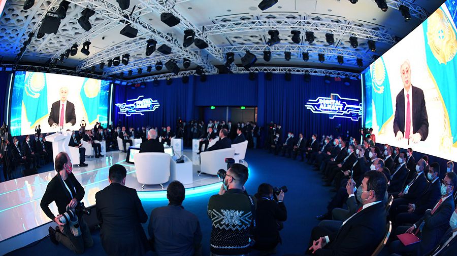 فورۋم قاتىسۋشىلارىنا بەينەكونفەرەنتسيا ارقىلى ۇندەۋ جاريالاعان مەملەكەت باسشىسى قاسىم-جومارت توقاەۆ بۇگىندە قازاقستاندا مەملەكەتتىك قىزمەتتىڭ 90 پايىزدان استامى ەلەكتروندى فورماتتا ەكەندىگىن جەتكىزدى. داعدارىس كەزىندە 6,5 ملن-عا جۋىق ازامات تسيفرلى جۇيەلەر ارقىلى مەملەكەتتىڭ قولداۋىنا يە بولعان. ال سىمسىز ينتەرنەتتى پايدالانۋشىلاردىڭ سانى 15 ملن-نان اسادى. وسى فورۋمدا بولاشاقتىڭ زاماناۋي تەحنولوگيالار مەن يننوۆاتسيالاردا ەكەنىن جاقسى تۇسىنەمىز دەپ اتاپ وتكەن پرەزيدەنت بۇل باعىتتا باسەكەلەستىكتىڭ جوعارى ەكەندىگىن اتاپ ءوتتى.