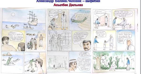 «كوميكس – كىتاپ پەن كينونى بايلانىستىراتىن سالا. وقۋشىلار شىعارمانى ءتۇسىنىپ وقي وتىرىپ, ەستەتيكالىق تالعام مەن كرەاتيۆتى كوميكس جاساپ شىعارعان» – دەيدى قازىلار القاسىنىڭ مۇشەسى, ورىس ءتىلى ءپانىنىڭ مۇعالىمى ايگۇلتالعاتقىزى.