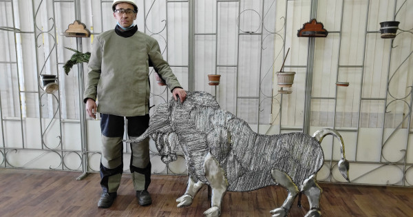 بەسىنشى دارەجەلى دانەكەرلەۋشى سالماعى 30 كيلوگرام تارتاتىن ونەر تۋىندىسىن ءبىر اپتانىڭ ىشىندە باستان اياق جاساپ ءبىتىپتى. شەبەر بيىل سيىر جىلى بولعان سوڭ, اۋەلى جىل جانۋارىن مۇسىندەمەك بولىپتى. الايدا تۋىندى يسپان كورريداسىنداعى دولى بۇقالاردان اۋماي قالعان.