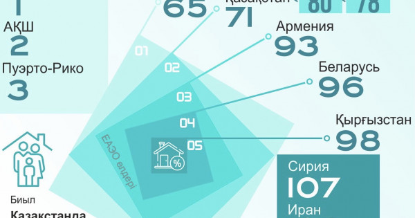 ءوزىمىز ءجيى سالىستىراتىن ەاەو ەلدەرىنىڭ ىشىندەگى ۇزدىك كورسەتكىش رەسەيگە تيەسىلى – 65-ورىن. الايدا ونداعى اي سايىنعى تولەم ءبىر وتباسىنىڭ كىرىسىنەن 30,3 پايىزعا كوپ. ارمەنيا – 93, بەلارۋس – 96, قىرعىزستان 98-ورىندا. بۇل ەلدەردەگى يپوتەكانىڭ ايلىق تولەمى ءبىر وتباسىنىڭ ايلىق تابىسىنان سايكەسىنشە 2,3, 2,5 جانە 2,6 ەسە جوعارى.