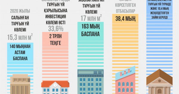 ءوز بايانداماسىندا ب.اتامقۇلوۆ 2020 جىلى رەسپۋبليكا بويىنشا 15,3 ملن شارشى مەتر تۇرعىن ءۇي سالىنعانىن, 140 مىڭنان استام باسپانا پايدالانۋعا بەرىلگەنىن اتاپ ءوتتى. تۇرعىن ءۇي قۇرىلىسىنا ينۆەستيتسيالار 2019 جىلمەن سالىستىرعاندا 33,6%-عا ءوسىپ, 2 ترلن تەڭگەنى قۇرادى. مەملەكەتتىك قاراجاتتىڭ 1 تەڭگەسىنە 5 تەڭگە جەكە ينۆەستيتسيا تارتىلدى. «38,4 مىڭ وتباسىنا مەملەكەتتىك قولداۋ كورسەتىلدى. ونىڭ ىشىندە 28 مىڭ الەۋمەتتىك تۇرعىن ءۇي تۇرىندە جانە 10,4 مىڭ جەڭىلدەتىلگەن زايم بەرىلدى. بيىل قارجىلاندىرۋدىڭ بارلىق كوزدەرى ەسەبىنەن 17 ملن شارشى مەتر تۇرعىن ءۇي سالۋ جوسپارلانۋدا – بۇل 163 مىڭ باسپانا», دەدى ب.اتامقۇلوۆ.