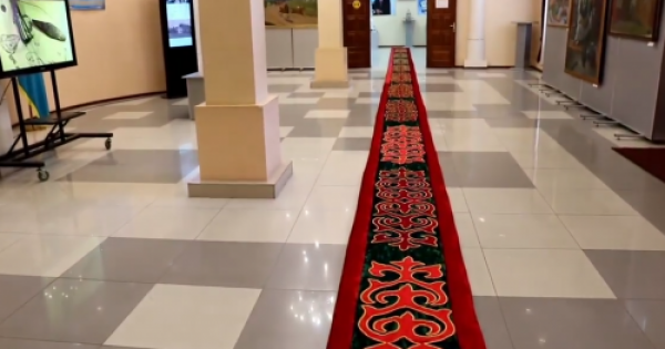 ون ساۋساعىنان ونەر تامعان ىسمەردىڭ قولىنان شىققان ۇزىن كورپە قوشقار ءمۇيىز ويۋىمەن كەستەلەنىپ, قىزىل-جاسىل ءتۇستى ماساتى ماتامەن تىستالعان.