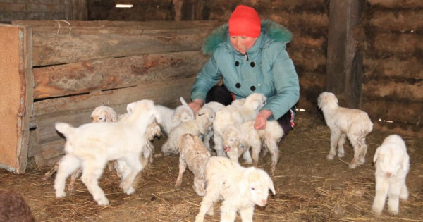 ءبىز بارعان كەزدە كەيىپكەرىمىز مال باسىندا ءجۇر ەكەن. ەشكىسى تولدەپتى. ءتورت بىردەي لاعى بار.