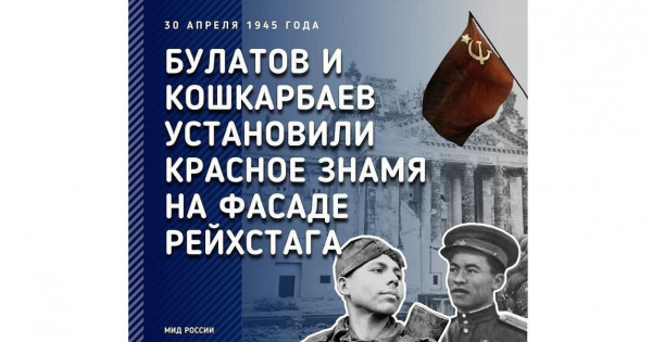 1945 جىلى 30 ساۋىردە قازاق جاۋىنگەرى راحىمجان قوشقارباەۆ پەن ەفرەيتور گريگوري بۋلاتوۆ رەيحستاگقا تىككەن جەڭىس تۋى بۇگىندە رەسەي فەدەراتسياسى قارۋلى كۇشتەرىنىڭ ورتالىق مۋزەيىندە ساقتاۋلى تۇر.