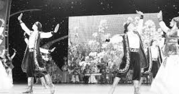 مىنا سۋرەتتە سول پورتۋگاليا ساپارىنان ءبىر كورىنىس بەينەلەنگەن. انسامبل مۇشەلەرىنىڭ ءبىرازى عيماراتقا ىلىنگەن وزدەرىنىڭ افيشاسىنىڭ جانىندا تۇر. سول جاق شەتتەگى مۇعالىم, مىقتى دومبىراشى اباشحان كولباەۆ, ال وڭ جاقتان ءبىرىنشى تۇرعان كوپتەگەن ادەمى ءاننىڭ اۆتورى, قازاقستان كومپوزيتورلار وداعىنىڭ مۇشەسى, بۇگىندە 76 جاستاعى سادىق قۇنانباەۆ. شىنىمىزدى ايتساق, ورتاداعى تورتەۋدى انىقتاۋعا مۇمكىندىك بولمادى...