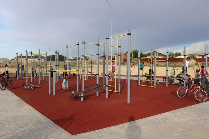 «سپورت الاڭىنىڭ قۇرىلىسىن «تەپلوينجستروي» جشس جۇرگىزدى. جالپى اۋماعى 0,377 گەكتاردى قۇرايتىن اشىق الاڭدا فۋتبول, باسكەتبول, ۆولەيبول, العاشقى اسكەري دايىندىق جانە Street Workout الاڭشاسى ورنالاسقان. ويىن الاڭدارى جاساندى كوگالمەن, جاتتىعۋ ورىندارى ارنايى جابىندىمەن قاپتالدى. جارىق شامدارى ورناتىلدى», دەيدى اۋدان اكىمىنىڭ ورىنباسارى ا.مۋساعاليەۆ.