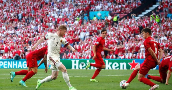 ويىننىڭ ەكىنشى جارتىسىندا بەلگيا قۇراماسىنىڭ كوزىرلەرى كەۆين دە بريۋينە مەن ەدەن ازاردىڭ الاڭعا كىرۋى ويىن كارتيناسىن وزگەرتتى. كەزەكتى شابۋىلداردىڭ بىرىندە لۋكاكۋ كەۆين دە بريۋينەگە, «مانچەستەر سيتي» ليدەرى تورگان ازارعا ادەمى پاس اسىرىپ, ازار دات قاقپاشىسى شمەيحەل توسقاۋىل بولا الماستاي سوققى جاساپ, گول سوعىپ كەتتى. وسىدان كەيىن اق بەلگيا قورعانۋشى پوزيتسيادان شابۋىلداۋشى پوزيتسياعا انىق ويىستى. 70 مينۋتتا كەۆين دە بريۋينەنىڭ ءوزى الىستان سوققى باعىتتاپ, ەسەپتى ەسەلەدى. ويىن سوڭىنا قاراي دانيانىڭ باستاپقى قارقىنى دا باسەڭدەي بەردى. كاسپەر حيۋلماند ويىن بىتۋگە 20 مينۋت قالعان ساتتەن باستاپ بىرنەشە تىڭ ويىنشىنى الاڭعا شىعاردى. الايدا بۇل روكيروۆكالار ەش ناتيجە بەرگەن جوق.