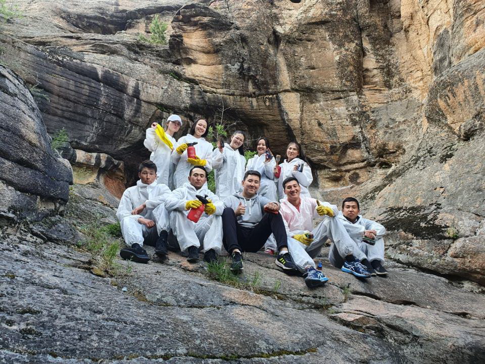 تاياۋدا قاراعاندى مەن قارقارالىنىڭ ەرىكتى جاستارى ء«وز ەلىمدە ءىز قالدىرماي Sayahattime» ەكواكتسياسىن قولداپ, جوعارىدا ايتىلعان تارتىپسىزدىكتىڭ سالدارىمەن كۇرەسكە شىقتى. بەلسەندى جاستار قارقارالى مەملەكەتتىك ۇلتتىق تابيعي پاركىندەگى ء«ۇش ۇڭگىر» جارتاسىنداعى جابايى جازۋلاردى ءوشىردى. ۆولونتەرلەر جازبالاردى جويۋعا ارنايى حيميالىق ەرىتىندىلەردى پايدالاندى. كەيبىر جەرلەردە گاز قىزدىرعىشتارىن دا قولدانۋعا تۋرا كەلدى.