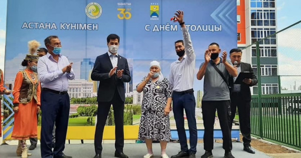 ء«بىزدىڭ بۇگىنگى قۋانىشىمىز استانا كۇنى مەرەكەسىمەن تۇسپا-تۇس كەلىپ جاتىر. وسى كۇندى كوپتەن كۇتىپ جۇرگەن ەدىك. جاڭا باسپانامىز ىرىس-بەرەكەگە تولسىن, كورشىلەرىمە شىن جۇرەگىمنەن باقىت, ىنتىماق تىلەيمىن, قونىس قۇتتى بولسىن!», دەدى وسى كوشەنىڭ بايىرعى تۇرعىنى, «التىن القا» يەگەرى, 11 بالا تاۋىپ وسىرگەن مءاستۋرا اتاۋلينا.