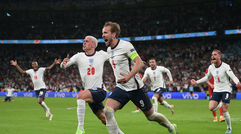 ەكسترا-تايمنىڭ 104-مينۋتىندا دانيا فۋتبولشىلارى ءوز ايىپ الاڭىندا راحيم ستەرلينگكە قارسى ويىن ءتارتىبىن بۇزىپ, باس تورەشى دانني ماككەلي 11 مەترلىك ايىپ دوبىن بەلگىلەدى. پەنالتيدى انگليا قۇراماسىنىڭ كاپيتانى جانە سۇرمەرگەنى حارري كەين ورىندادى. نەگىزى دانيا قاقپاشىسى شمەيحەل كەيننىڭ سوققىسىن العاشىندا قايتارعان بولاتىن, الايدا قاقپاشىدان قايتقان دوپقا ءبىرىنشى جەتكەن حارري ەكىنشى مۇمكىندىگىندە ءمۇلت كەتپەدى.
