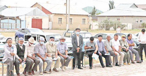 كارانتين تالاپتارىنا ساي اۋىلدىق كلۋب الدىندا وتكەن كەزدەسۋگە اۋىل تۇرعىندارى, اقساقالدار, جاستار جينالدى.