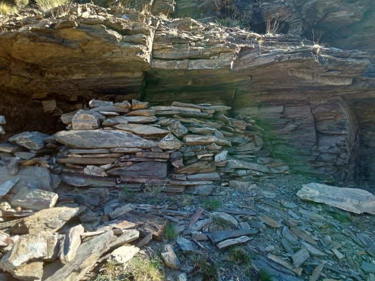 سۋرەتتە: «قاتىران باندى» بەكىنىسىنىڭ قازىرگى كورىنىسى. ۇڭگىردىڭ ۇزىندىعى 4 مەتر; بيىكتىگى 1,7 م; ۇڭگىر قۋىسى