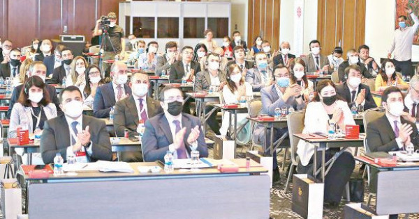 ءىس-شارا باسىندا قاتىسۋشىلار الدىندا تۇركيا پرەزيدەنتى اكىمشىلىگىنىڭ بايلانىس باسقارماسىنىڭ باسشىسى فاحرەتتين التۋن ءسوز سويلەدى.