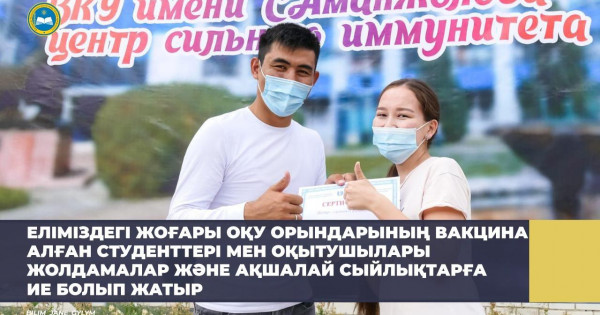 قازاق ۇلتتىق قىزدار پەداگوگيكالىق ۋنيۆەرسيتەتىندە پروفەسسور-وقىتۋشىلار قۇرامى مەن قىزمەتكەرلەردىڭ 90%-عا جۋىعى, سونداي-اق 18 جاستان اسقان مىڭنان استام ستۋدەنت ەكپە سالدىردى. ۆاكتسينا العان ءبىلىم الۋشىلاردىڭ اراسىندا ءتىل كۋرستارىنا سەرتيفيكاتتار ويناتىلدى.