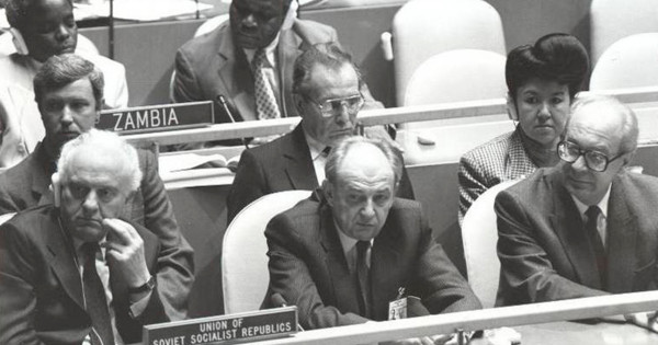 مەن 1990 جىلى كسرو سىرتقى ىستەر ءمينيسترى ە.ا.شەۆاردنادزە باستاعان كەڭەس دەلەگاتسياسىنىڭ قۇرامىندا بۇۇ با 45-سەسسياسىنىڭ جۇمىسىنا الەۋمەتتىك جانە گۋمانيتارلىق ماسەلەلەردى قارايتىن با ءۇشىنشى كوميتەتىندەگى كەڭەس دەلەگاتسياسىنىڭ باسشىسى رەتىندە قاتىستىم.