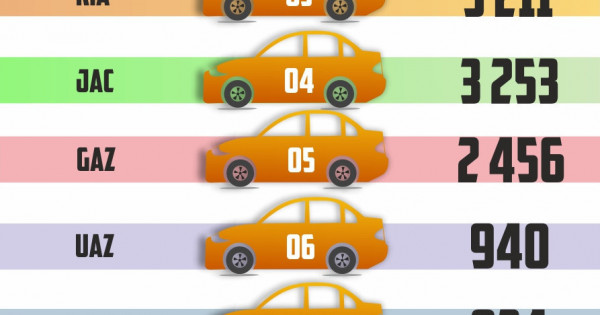 قازاقستانداعى كاسىپورىنداردا وندىرىلگەن ەڭ تانىمال برەندتەر: Chevrolet (18 362 بىرلىك), Hyundai (14 322 بىرلىك), Kia (5 211 بىرلىك) JAC (3 253 بىرلىك), GAZ (2 456 بىرلىك), UAZ (940 بىرلىك), KAMAZ (824 بىرلىك), Lada (394 بىرلىك), Hyundai Trucks (301 بىرلىك) جانە Renault (294 بىرلىك).