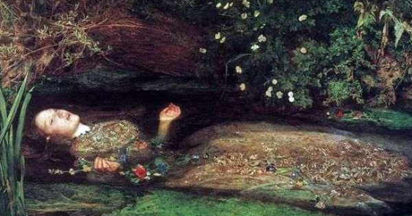 سۋرەتشى دجون ميللە «وفەليا» كارتيناسىنا نەگىز رەتىندە ۋيليام شەكسپيردىڭ «گاملەت» پەساسىنان سيۋجەت الادى. بۇل – سۇيىكتىسى اكەسىنىڭ قولىنان ولگەنىن ءبىلىپ, ءوز-وزىنە قول جۇمساعان قىزدىڭ اجال قۇشاعىنداعى بەينەسى. مۇندا ونىڭ وزەنگە قۇلاعان ءساتى بەرىلگەن. ارۋ مۇڭلى ءاننىڭ ىرعاعىنا تەربەلىپ بارا جاتقانداي. ەكى قولىن قۇس قاناتىنداي جايىپ جىبەرىپ, كوز جانارىن اسپانعا قادايدى. سوندىقتان ونىڭ قالىبىن كوپتەگەن وقىرمان ايقىشقا شەگەلەنگەن يسا ماسىحپەن بايلانىستىرادى.
