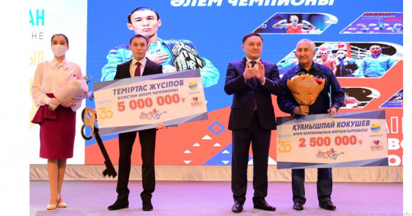 ءوڭىر باسشىسى ەرمەك مارجىقپاەۆ وبلىستا سپورتتى دامىتۋ باعىتىندا جاسالىپ جاتقان قاداۋ-قاداۋ شارۋالارعا توقتالا كەلىپ, ەل تاۋەلسىزدىگىنىڭ 30 جىلدىعىندا مەرەيىمىزدى اسىرعان جارقىن جەڭىسكە توقتالدى. 33 جاسىندا الەم چەمپيونى اتانعان تەمىرتاس ءجۇسىپوۆتى قۇتتىقتاپ, ەكى بولمەلى پاتەر مەن 5 ملن تەڭگەنىڭ سەرتيفيكاتىن تابىس ەتتى. چەمپيوناتتا جاسىنداي جارقىلداعان جەڭىمپازدىڭ جەكە باپكەرى قۋانىشباي قوقىشەۆقا 2 ملن 500 مىڭ تەڭگە كولەمىندە سىياقى بەرىلدى.