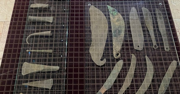 سۋرەتتە: اتاقتى ارحەولوگ ك.اقىشەۆتىڭ پلاشش-شەكپەنى جانە تايپاق اۋىلى ماڭىنان تابىلعان قولا جادىگەرلەر
