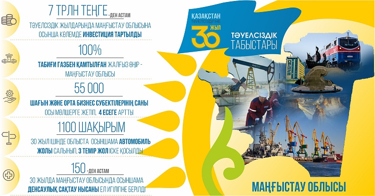 ازاتتىقتىڭ وتىز جىلى ىشىندە ماڭعىستاۋ وبلىسىندا 150-دەن استام دەنساۋلىق ساقتاۋ نىسانى ىسكە قوسىلعان. ال جەدەل جاردەم اۆتوپاركى 100%-عا جاڭاردى. جاڭاوزەن قالاسىندا وزىق ۇلگىدەگى اۋرۋحانا مەن ەمحانالار پايدالانۋعا بەرىلدى.