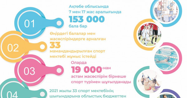 اقتوبە وبلىسىندا 7 مەن 17 جاس ارالىعىندا 153 مىڭ بالا بار. وڭىردەگى بالالار مەن جاسوسپىرىمدەرگە ارنالعان 33 مامانداندىرىلعان سپورت مەكتەبىندە 19 مىڭنان استام ءجاسوسپىرىم بىرنەشە سپورت تۇرىمەن شۇعىلدانادى. وسى رەسمي دەرەك سپورتپەن شۇعىلداناتىن جەتكىنشەكتەر سانىنىڭ وتە از ەكەنىن كورسەتەدى. 2021 جىلى 33 سپورت مەكتەبىنىڭ شىعىندارىنا وبلىستىق بيۋدجەتتەن 375 ملن 717 مىڭ تەڭگە ءبولىندى. سونداي-اق ەرەكشە قاجەتتىلىگى بار بالالاردىڭ ينكليۋزيۆتى ءبىلىم الۋىمەن قاتار سپورتپەن شۇعىلدانۋىنا دا جاعداي جاساۋ كۇن تارتىبىندەگى ماسەلە. تاعدىر سىناعىنا ءتۇسىپ, ءتورت قابىرعاعا تاڭىلعان بالالاردىڭ دەنەشىنىقتىرۋمەن اينالىسۋىنا مۇمكىندىكتەرى جوق. اسىرەسە, سال اۋرۋىنا شالدىققان بالالارعا دەنە جاتتىعۋلارى ءبىرىنشى كەزەكتە كەرەك-اق.