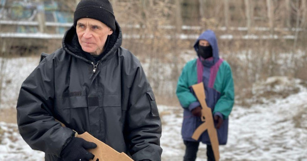 ءتىپتى زەينەتكەرلەر دە كيەۆ ماڭىنداعى ورماندا سوعىسقا دايىندىق جاتتىعۋلارىن ۇيرەنۋدە.