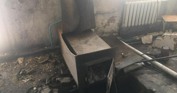 ت.رىسقۇلوۆ كوشەسىندە ورنالاسقان شاعىن جيناقتى ورتا مەكتەپ اۋماعىنداعى قاتتى وتىن قولدانىلاتىن قازاندىق جارىلعان. وقيعا ورنىندا 1963 جىلى تۋعان وت جاعۋشى كوز جۇمدى.