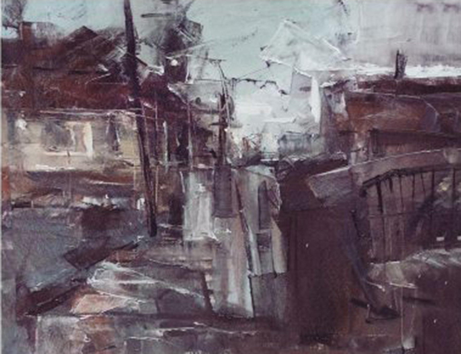 ماسەلەن, الماتى قالاسىنا ارنالعان پەيزاج توپتامالارىندا ەكسپرەسسياعا تولى بوياۋ جاعىستارى ادامنىڭ جۇرەك قاعىسىن جىلدامداتا ءتۇسىپ, ەرەكشە كوڭىل كۇيگە جەتەلەيدى. بۇل قالالىق پەيزاجداردىڭ باسىم بولىگى قاراڭعى دا كۇڭگىرت تۇستەرمەن جازىلعان تاس قابىرعالى سۋىق عيماراتتار, بوس كوشەلەر, شاعىن ۇيلەر بارلىعى ادام بالاسىنا ەش جىلۋلىق, جايلىلىق سىيلامايتىن كەڭىستىك رەتىندە ايقىندالعان. مىنە, بۇدان ءبىز ۇلكەن قالادا اداسقان ادامنىڭ كوزقاراسىن تانيمىز. سۋرەتشى مۇنى تىكەلەي اشىپ كورسەتپەسە دە, ىشكى تۇيسىگىنىڭ ناتيجەسىندە كورىنىس تاۋىپ تۇر.