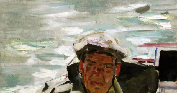 سۋرەتكەر بالقاش وزەنىنىڭ وڭتۇستىك جاعاسىندا ورنالاسقان بالىقشىلار اۋىلىنا ارنالعان بىرقاتار كارتينا جازعان. بۇل جەرگە ءجيى شىعارماشىلىق ىسساپارمەن كەلىپ تۇردى. باقساڭىز, اتالعان شىعارماسىندا موتورلى قايىقپەن كەتىپ بارا جاتقان بالىقشىنى بەينەلەيدى. ءبىر قاراعاندا وتە جيناقى پورترەت, بالىقشىنىڭ تۇلعاسى ءمولدىر سۋعا قاراما-قارسى كورىنەدى. كەيىپكەردىڭ باس كيىمى مەن يىعىنا اق تاڭبا بولىپ تۇسكەن كۇننىڭ جارىعى كول تولقىندارىمەن اقتاڭداقتانىپ ادەمى كورىنىس سىيلايدى. كورەرمەننىڭ نازارى كۇنگە كۇيگەن, توتىققان جانە ءبىر قاراعاندا قاتال ءجۇزدى ەر كىسىنىڭ كەلبەتىنە تۇسەدى, ونىڭ بالىقشىعا ارنالعان برەزەنت پلاششىنىڭ جاعاسىنان جەل ەسىپ تۇر.