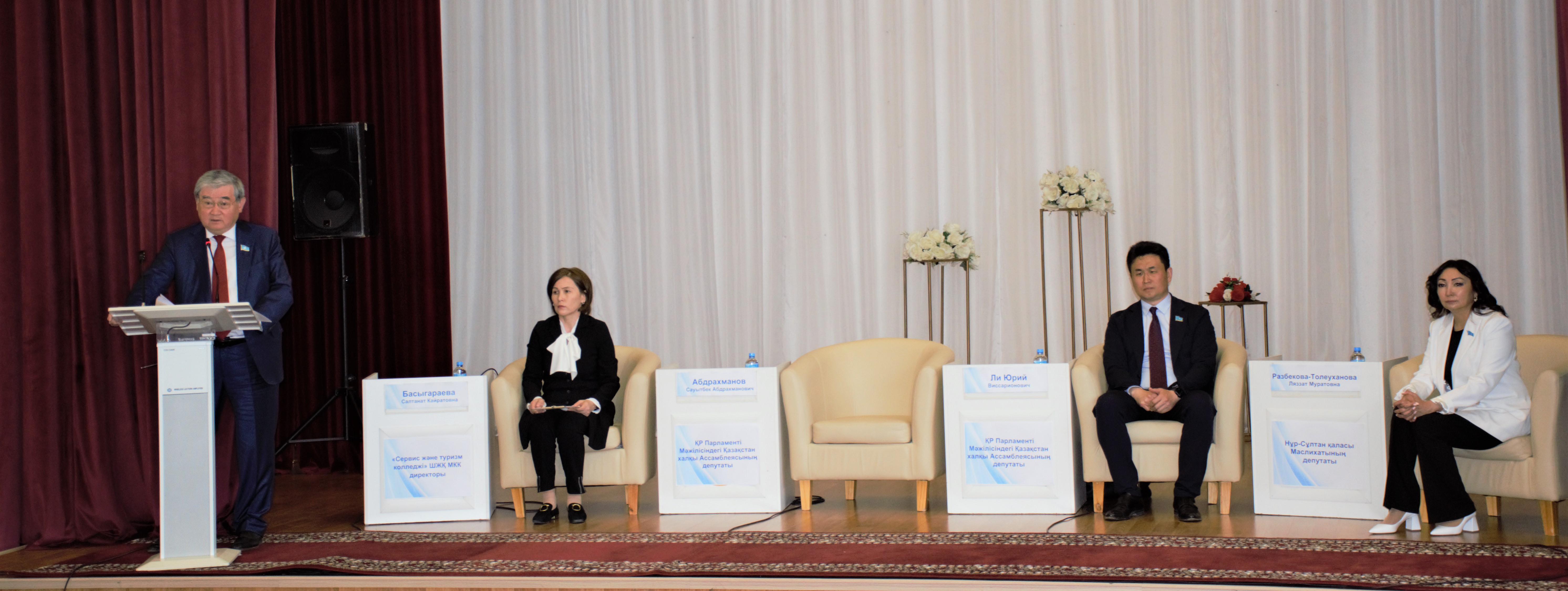 كەزدەسۋگە سەرۆيس جانە تۋريزم, تەحنولوگيالىق كوللەدج, كولىك جانە كوممۋنيكاتسيا جانە Astana Polytechnic جوعارى كوللەدجدەرىنىڭ, سونداي-اق «استانا-پروفي» قالالىق شارۋاشىلىق كوللەدجىنىڭ ستۋدەنتتەرىمەن قاتار مەكتەپ مۇعالىمدەرى قاتىستى. كەزدەسۋ بارىسىندا دەپۋتاتتار كونستيتۋتسياعا ۇسىنىلىپ وتىرعان تولىقتىرۋلاردى تالقىلاپ, ولاردى رەسپۋبليكالىق رەفەرەندۋم ارقىلى ەنگىزۋدىڭ ماڭىزدىلىعىن اتاپ ءوتتى.