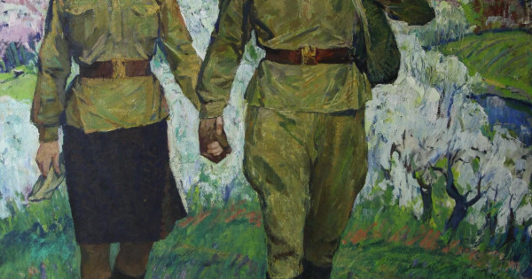 سۋرەتشى ءوز جۇمىسىندا ساربازدىڭ سوعىستان ورالۋىن جەتكىزگەن. ول وسى كومپوزيتسيا ارقىلى تۋعان جەرىنە امان كەلگەن باتىردى كۇتىپ العان جاس ارۋدىڭ قۋانىشىن ادەمى سۋرەتتەگەن. الايدا ولار سوعىستىڭ بارلىق اۋىرتپالىعىن باستارىنان وتكەرگەن. كەۋدەلەرىندە قايسار رۋح قونىستانعان جانە الداعى ومىرىنە سەنىممەن قادام باسادى.